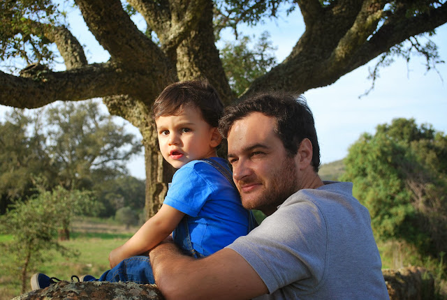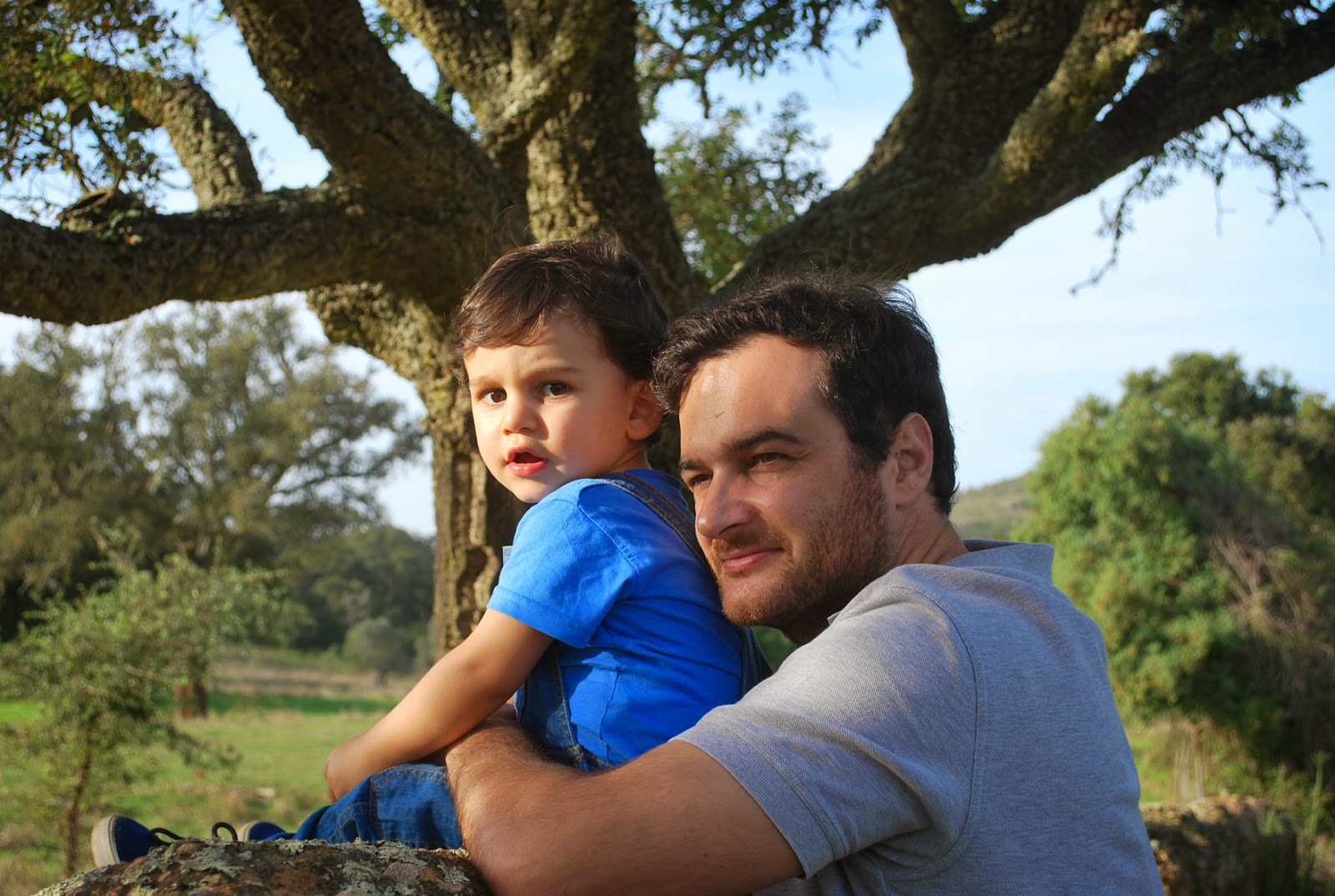 + o pai está habituado a sessões fotográficas e já arranjou 'a' expressão certa. o outro está desconfiado de tanta exigência nas poses.