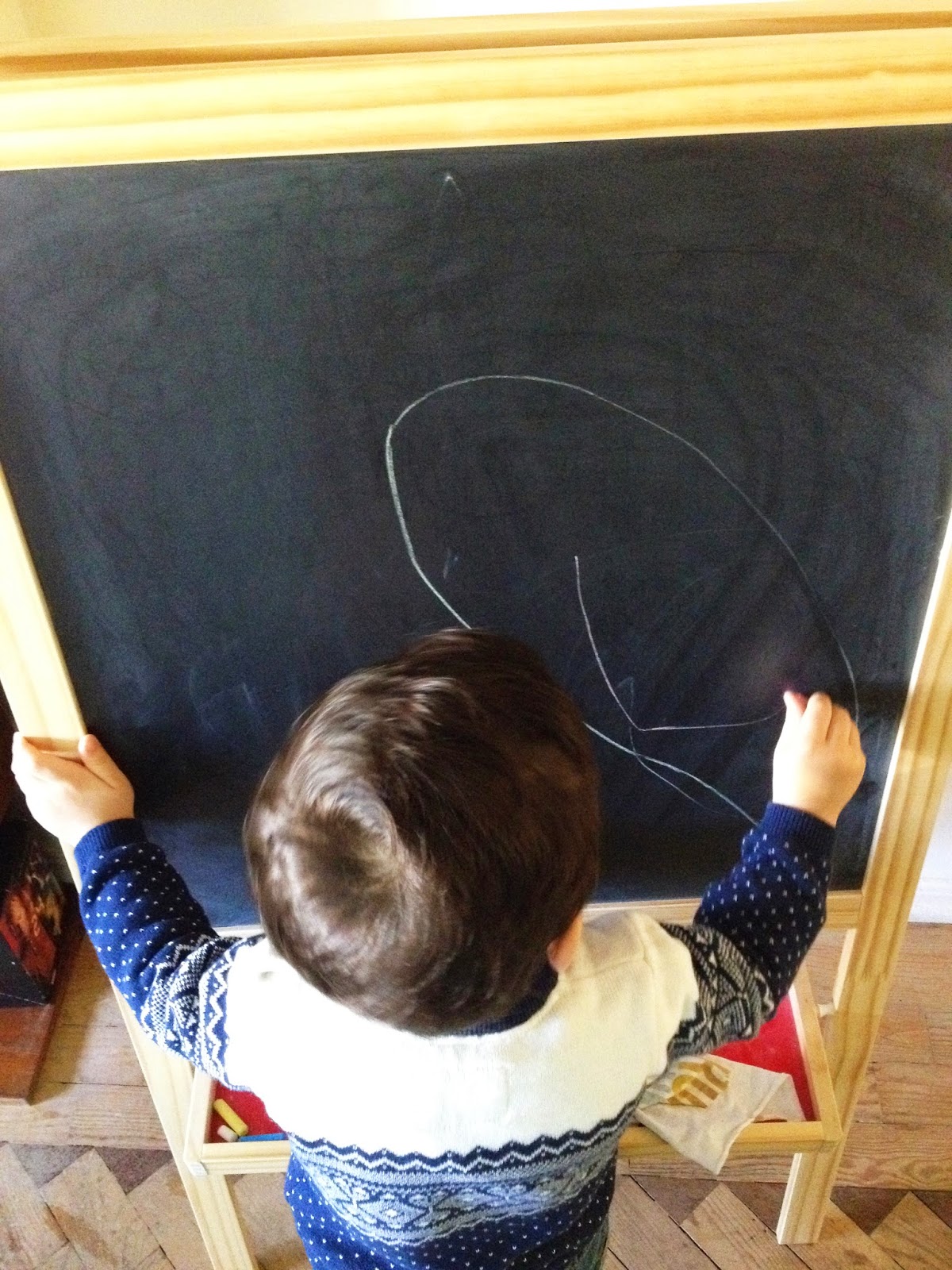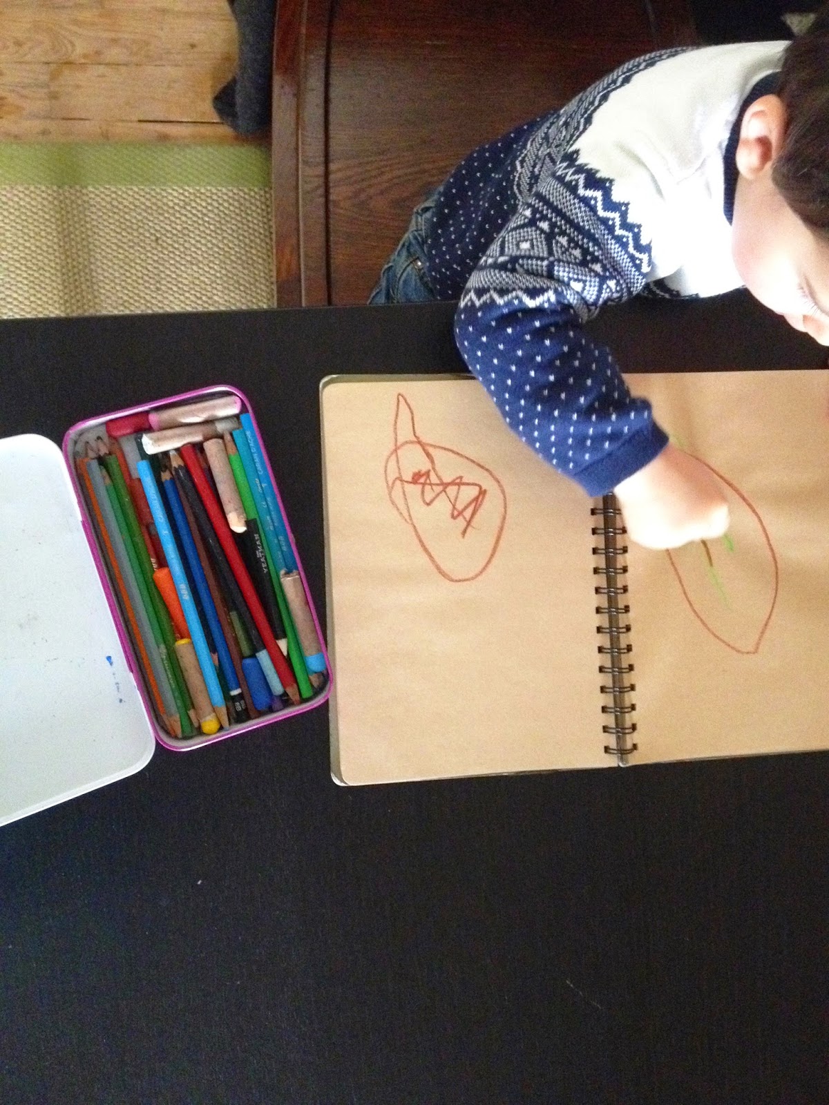 de vez em quando pede para fazer desenhos e fica concentrado a escolher as cores, a desenhar animais e bolas e a escrever.